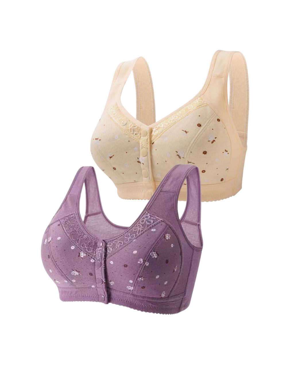 O sutiã reforçado botão frontal foi confeccionado com design exclusivo, não possui ferros, arames e fechos que incomodam, machucam e pinicam a pele. Possui tecido de poliéster e algodão respirável, deixando-a seca e confortável o dia todo.